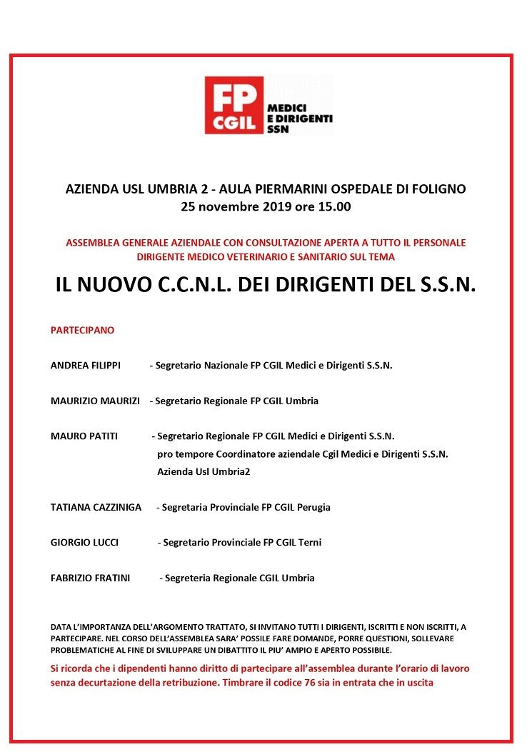 ASSEMBLEA GENERALE AZIENDALE CON CONSULTAZIONE APERTA A TUTTO IL PERSONALE DIRIGENTE MEDICO VETERINARIO E SANITARIO SUL TEMA "IL NUOVO C.C.N.L. DEI DIRIGENTI DEL S.S.N."