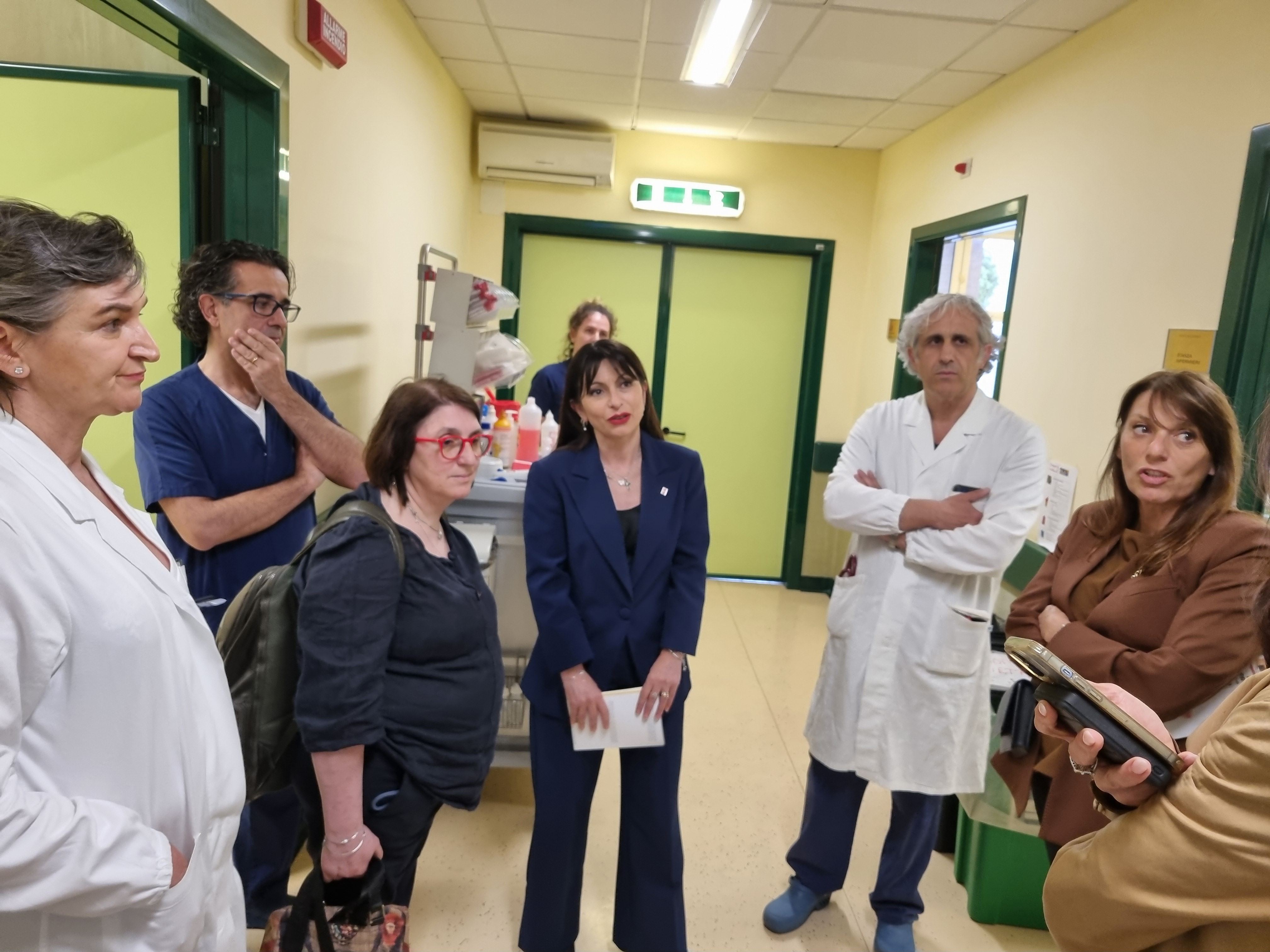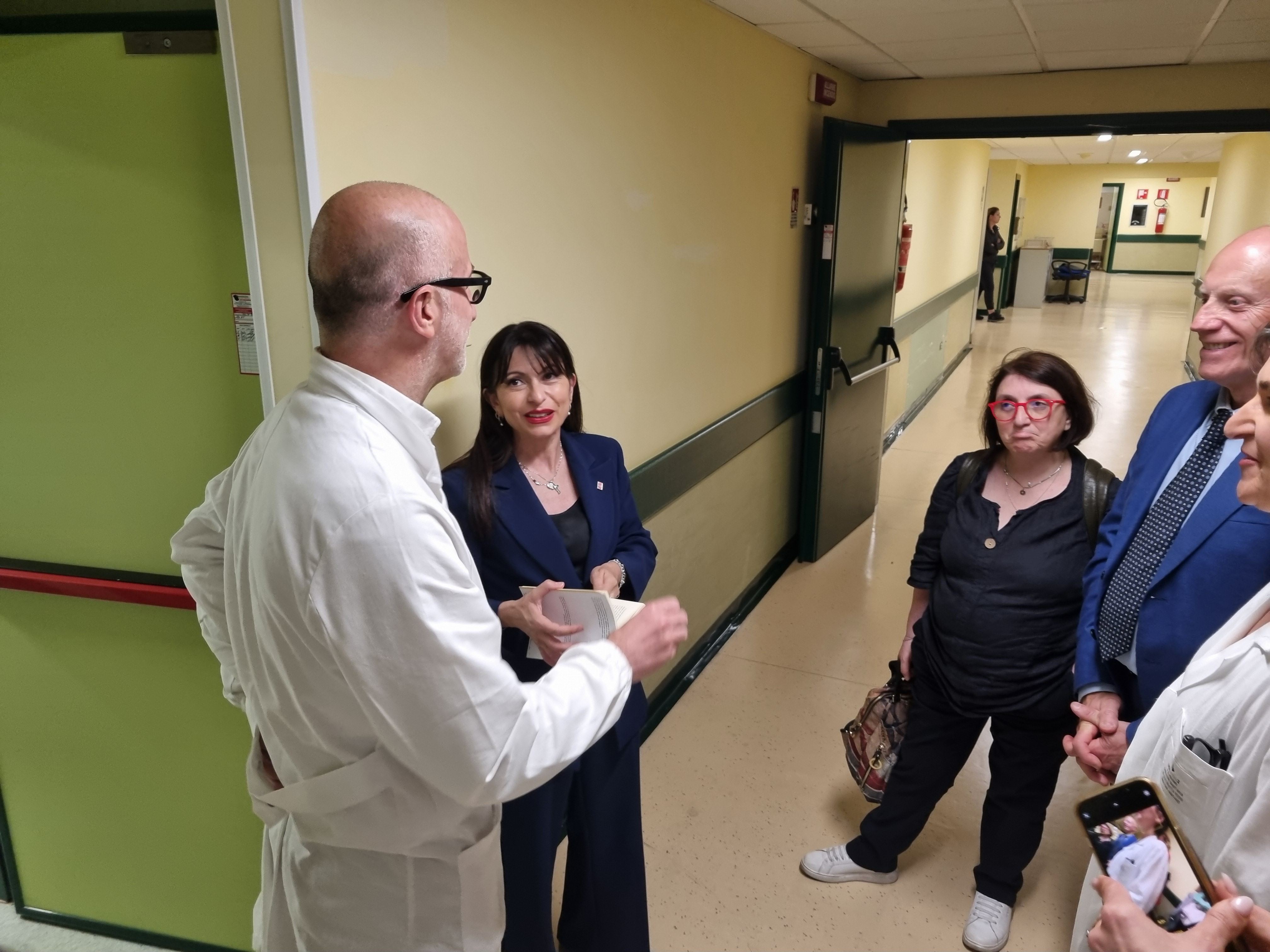 La delegazione ha incontrato il personale e le associazioni nella sala Alesini per poi visitare alcuni reparti ed aree ospedaliere.