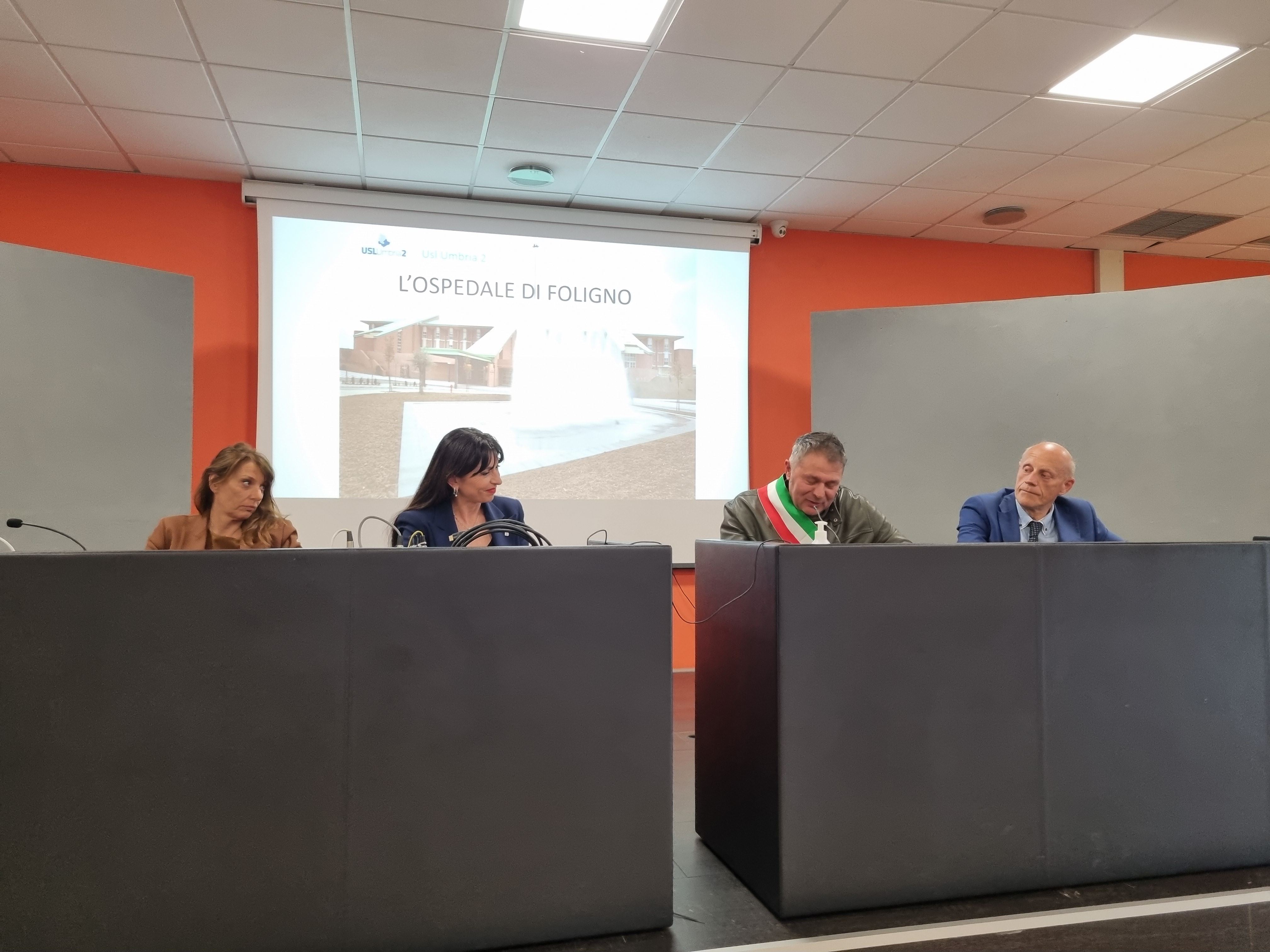 Dopo il saluto della città alla delegazione regionale e agli operatori del sindaco di Foligno Stefano Zuccarini, la direttrice dell'ospedale di Foligno Orietta Rossi ha presentato i dati di attività ed i programmi di sviluppo del presidio ospedaliero di Foligno, in linea con la programmazione regionale.